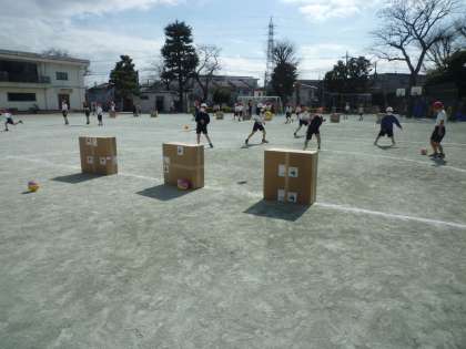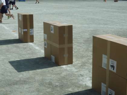 タブレットが配送された時の段ボール。そのまま捨てるのはもったいない!と先生が工夫して体育の教材を作りました。