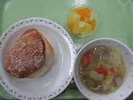 手作り焼きカレーパン・ポトフ・フルーツ白玉・牛乳