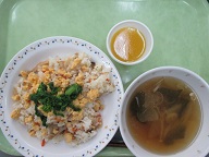 菜の花ずし・すまし汁・桃のゼリー・牛乳