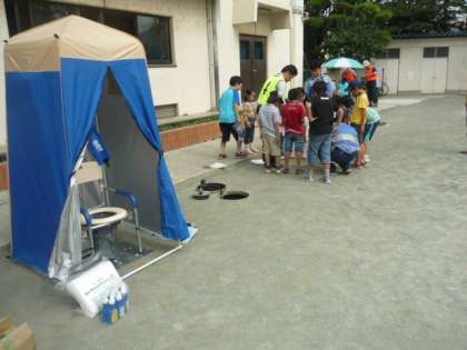 子どもたちは、6つの防災訓練を真剣に行いました。消火訓練・通報訓練・マンホールトイレ・ロープワーク・起震車・煙中訓練の6つでした。とても貴重な体験ができました。