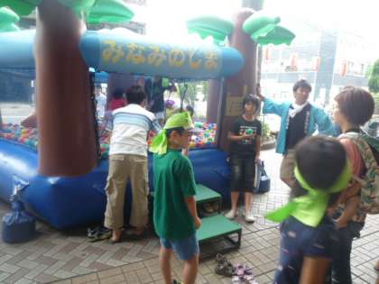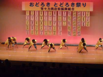 今日の午後からの等々力祭りには、「玉小ちょこボラお祭り隊」4人と「玉小ソーラン」踊り隊60人が参加して、それぞれの持ち場で頑張ってくれていました。特に、「玉小ソーラン踊り隊」は、多摩川区民会館のステージで200人くらいのお客様の前で、一生懸命踊ってくれていました。