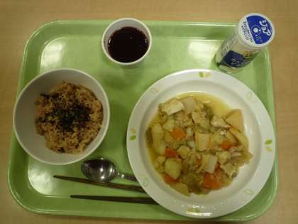 赤飯 乳酸飲料 春野菜のうま煮 ブドウゼリー