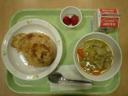 あげパン(きな粉) ポトフ 果物(イチゴ)牛乳