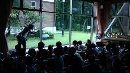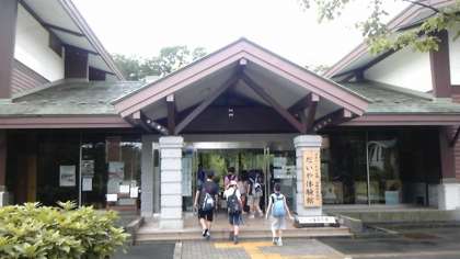 雨は止んできたのですが、地面が濡れているため、大谷川公園近くの体験学習施設「だいや体験館」というところで、昼食を取り見学をしています。出来てまだ6年目の新しい施設で、東照宮のミニチュアが展示され事前学習として最適な場所です。