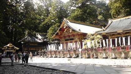 東照宮に到着しました。グループに別れて、自作の解説書を使って自分達で見学です。天気も回復して、青空ものぞいています。
