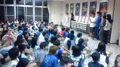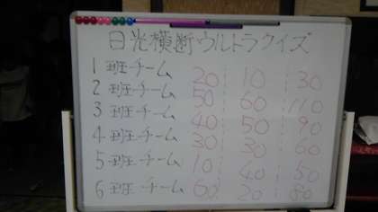 今日は、天気に見放されているのか、去年できなかったので是非やりたいと思っていたキャンプファイヤーでしたが、雨と地面がぐちゃぐちゃのため断念しました。代わりに室内レク「日光横断ウルトラクイズ」を行うことになりました。狭い空間でしたが、子どもたちはクイズとダンスとウルトラクイズに時間を忘れて楽しんでいました。
