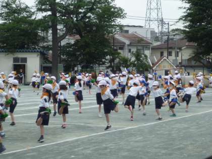 首に巻いたバンダナ、きらきら光る腕輪、かっこいいダンスです。入学して2か月・・・大きく成長しました。