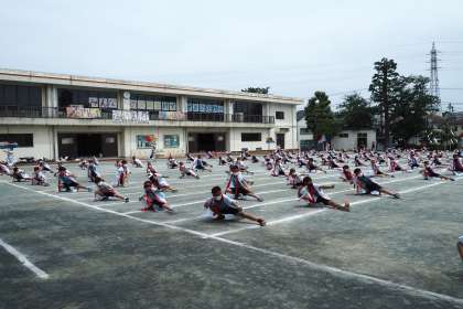 ハッピの後ろの漢字は、自分で選び書いたものです。力強い踊りに高学年としてのたくましさを感じました。