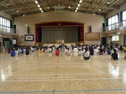 インターネットを使用するとき、どんなことに気を付けたらいいのか学習しています。学年全体で同じ話を聞き、考え、共通理解を深めます。