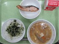 ごはん・ふりかけ・さけのてりやき・豚汁・牛乳
