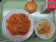 スパゲティナポリタン・じゃがいもハニーサラダ・パインケーキ・牛乳