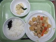 ごはん・じゃがいものそぼろ煮・かぶのあさづけ・ひじきふりかけ・ぎゅうにゅう