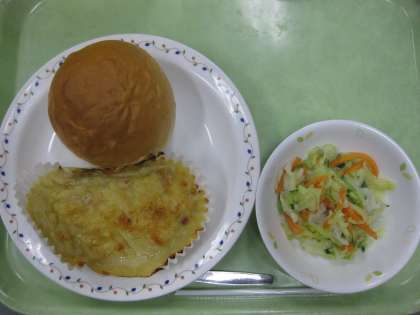 パインパン・ポテトグラタン・きゃべつのサラダ・牛乳