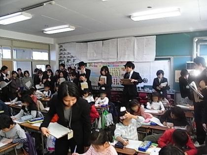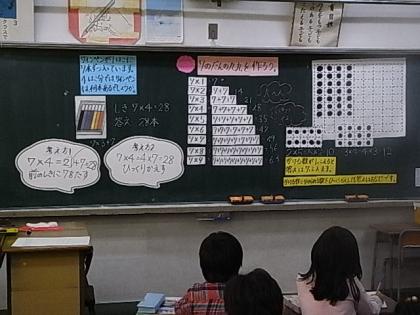 本年度世田谷区の公立小中学校に初任者として勤務している先生たちが、2年3組の阿河先生の算数のかけ算の授業を通して、研修会を行ないました。7の段の九九を作り上げていく授業でしたが、子どもたちが今までの学習を生かして、かけ算のいろいろな決まりを見つけていく様子に感心しました。阿河先生と子どもたちがとてもいい雰囲気で、楽しそうに授業をしている姿は、他の先生たちのとてもいい研修になったことでしょう。その後の協議会でも、話し合いが盛り上がったと指導主事の先生から言われました。初任の先生たちの授業後の話し合いも真剣な様子が見られました。