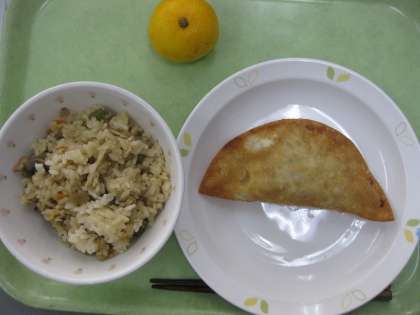 きのこごはん・ジャンボぎょうざ・みかん・牛乳