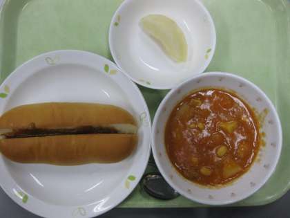 きなこクリームパン・ポークビーンズ・りんご・牛乳