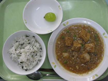 わかめとじゃこのごはん・なまあげのそぼろあんかけ・シャインマスカット・牛乳