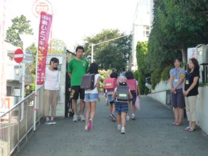 中学生のお兄さんお姉さんともあいさつできている子もいました。3校が合同でやっているキャンペーンです。3校でいろいろな関わりや交わりができるといいなと思っています。今日もPTA役員の皆様がお手伝いいただいております。校外班でも班長さんたちがやってくださっていると聞いています。ありがとうございます。