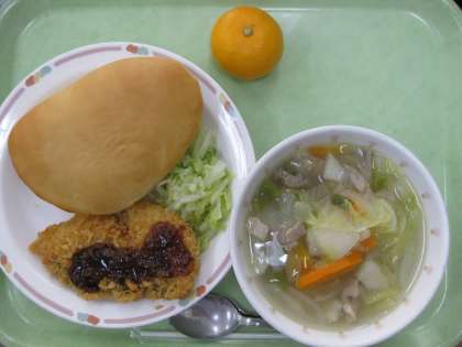セルフフィッシュサンド・白いんげんまめのスープ・みかん・牛乳
