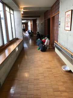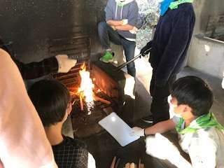 宿舎での避難訓練の後は楽しみな焼き芋です。どの班も上手に焼いて美味しく頂きました。夕日を見ながら部屋に戻りました。