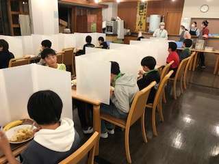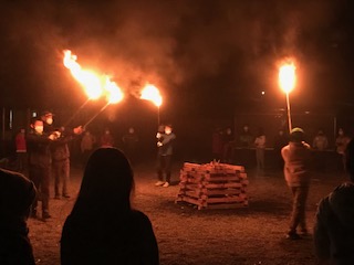 食事係がテキパキ準備して夕食はカレーです。たくさん食べてしっとりキャンプファイヤーへ。こちらもファイヤー係が上手にリードして盛り上がりました。この後は入浴就寝で夜が更けていきます。
