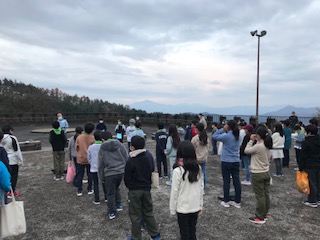 昨夜は各部屋で上手に就寝できました。朝は冷たい空気の中朝会とラジオ体操をしました。朝食はまた食事係が活躍してくれました。