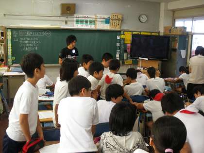 今日の2,3校時、6年1組の柴田教諭の4年次研修が行われました。教育委員会のサポート室から橋本由愛子先生をお迎えして、算数と体育の授業を見ていただきました。さすがに6年生、算数の授業では、チャイムが鳴ると20秒後には自分たちで静かになって日直の指示であいさつができていました。授業でも積極的に自分の考えを友だちと比べて考察したり、どうやって速さを比べたらいいかについて友達と議論したり、エネルギッシュな子どもたちが発言する楽しい授業でした。体育の授業では、ハードル走を練習。自分の課題をもって、カードを見ながら、練習に励んでいる様子に感心しました。また、用具の準備や後片付けを男女仲良くやっている姿に感心しました。