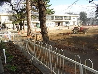 校庭を区分けしていたフェンスも取れ、土慣らしをしているところです。もうすぐ、校庭を広々と使えますよ。1月8日まで待っていてください。事故防止のために、中休みと昼休みの時間は、工事をやめてもらっています。ボールが工事現場に入った場合は、警備員の方に拾ってもらっています。ご安心ください。