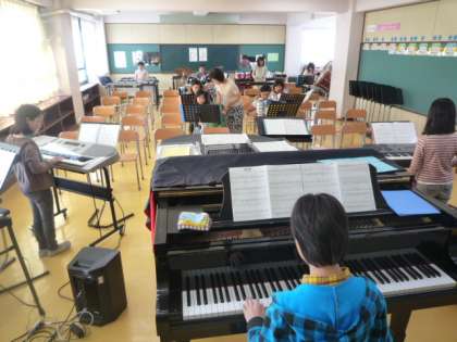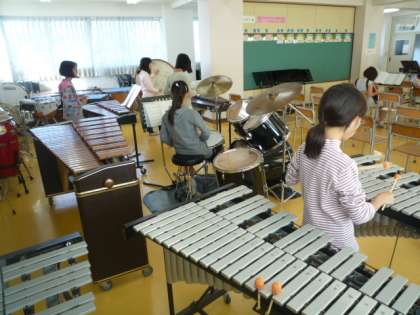 10月15日のファミリ—デーへの出演のために、音楽クラブは、早朝練習で猛特訓を受けています。今日はたまたま5年生が社会科見学でいませんでしたが、4年生と6年生が一生懸練習していました。