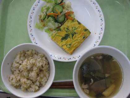 じゃこごはん・たまごやき・やさいのゆかりかけ・よしのじる・牛乳