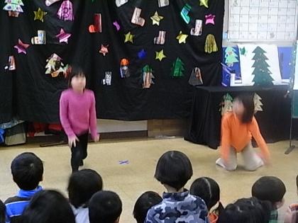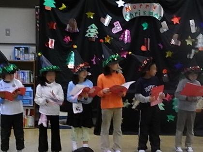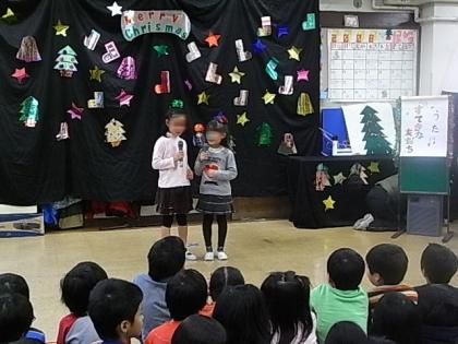 今日、新BOPで、年末お楽しみ会が開催され、招待状を子どもからもらいましたので、見に行きました。子どもたちが司会進行して、とても和やかな雰囲気で行われていました。新BOPのお母さんたちが陰になって動いていましたが、子どもたちは自分のパフォーマンスを発揮できる喜びに、とても張り切ってがんばっていました。学校内では見られない子どもたちの演技や技に感心しました。