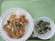 中華丼・ハムともやしのナムル・牛乳