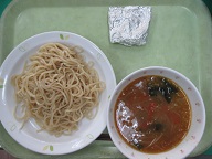 みそラーメン(つけめん)・むしチーズもち・牛乳