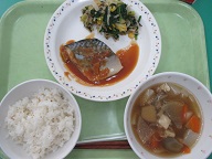 ごまごはん・さばのみそに・いそあえ・けんちんじる・牛乳
