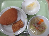 照り焼きチキンバーガー・ポトフ・りんご・牛乳