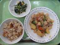 山坂達者飯・肉じゃが・いそあえ・牛乳
