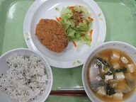 ごまごはん・肉じゃがコロッケ・ボイルキャベツ・けんちん汁・牛乳