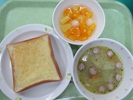 ガーリックトースト・ポトフ・フルーツ白玉・牛乳