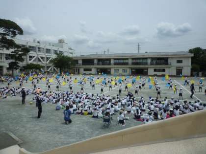 今日は、運動会の児童観賞日です。全校で校庭に集まりました。3年生から始まります。