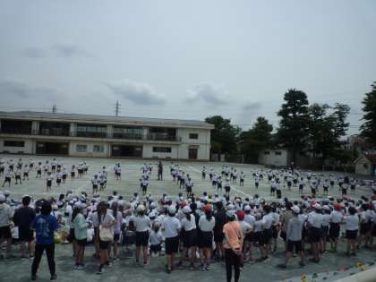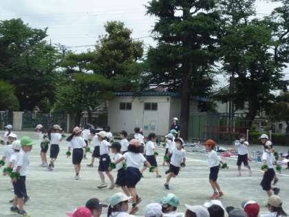 手首につけたきらきら光る輪は、学級ごとに色が違います。かわいい1年生の登場に、全校が優しい表情になります