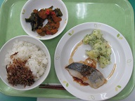 ごはん・さわらの梅あんかけ・こふき芋(あおのり)・