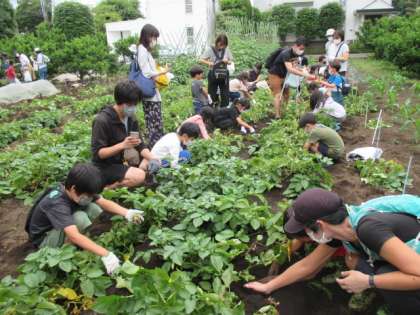 学校協議会の皆さんのご協力で、3年生親子がジャガイモ掘りを体験しました。せたがや育ちのおいしいじゃがいも。どんな料理に変身するのでしょうか。