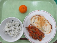 わかめとじゃこのごはん・さけのパン粉焼き・きんぴらごぼう・冷凍みかん・牛乳