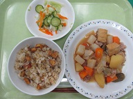 山坂達者飯・五目うまに・野菜のあまずあえ・牛乳