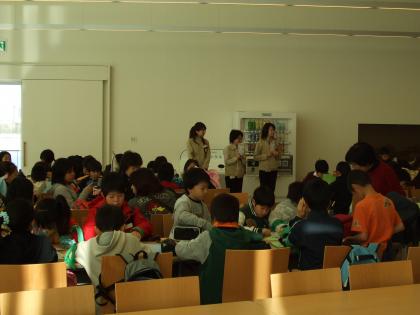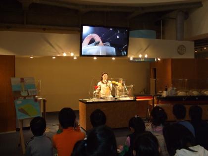 左下の写真はガスの科学館での様子です。事前に説明を聞いている場面です。これから始まる見学に意欲を示していました。右下の写真はガスの科学館での様子です。ガスを冷やすと風船が縮まるという実験をしているところです。子どもたちは実験の結果に「おー、すごい!!」と声を張り上げていました。また、メモを真剣にとっている姿も印象的でした。