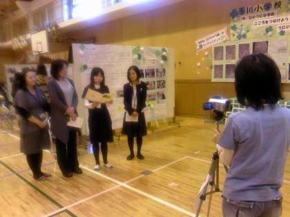 今日、中町小学校の体育館で、7ブロックの各校の研修委員が集まって、今年の研修内容についての報告会を行いました。玉川小の研修委員も今年行った塩竈市立玉川小学校との交流の様子について掲示物を通して発表していました。たくさんの学校の研修委員や役員の方々がブースを訪れて、そのいきさつや内容について見入ったり質問したりしていました。研修委員の皆様、ご苦労様でした。