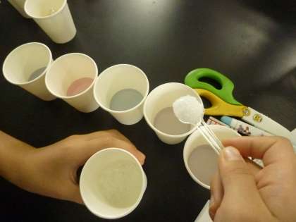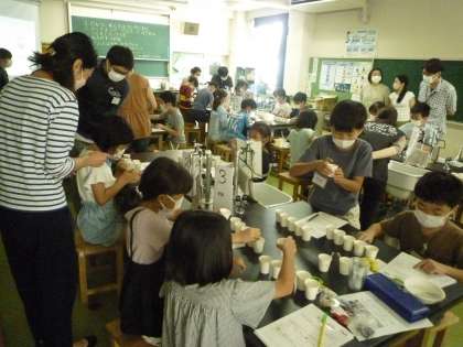 理科室でサイエンスクラブを行いました。東大のサイエンスサークルの皆さんが「料理の科学」を教えてくださいました。液体の色の変化を興味深く観察できました。