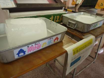 南極の氷を玄関に置きました。水道水でできた氷との違いを見つけることができました。10時頃に置いたのですが、午後も氷のまま残っています。