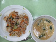 中華丼・中華風コーンスープ・牛乳