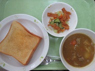 メープルトースト・カレーシチュー・カリカリ豆サラダ・牛乳